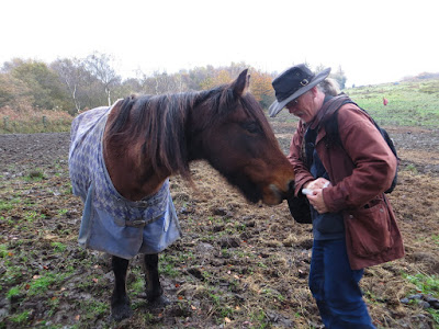 The couple who ran Briwnant moved their horses to fields near Caerphilly mountain, and most kindly took Dee with them – as she is ‘part of their family’. We see her occasionally, and this weekend was one of our visits. She came to call as soon as she saw us. At 26 years old, she is still lead mare, but now of a herd of about 12 horses, rather than of over 30. She seemed pleased to see us and looks well. I know that she is as well cared for there, as ever she was at Briwnant.